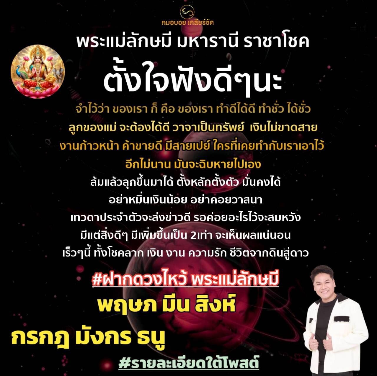 หมอบอย เคลียร์ชัด เผยถึงดวงชะตาราศี พระแม่ลักษมี มหารานี ราชาโชค ลูกของแม่ต้องได้ดี วาจาเป็นทรัพย์ เงินไม่ขาดสาย งานก้าวหน้า ค้าขายดี มีสายเปย์ ใครที่เคยทำกับเราไว้ อีกไม่นาน ต้องเจอกับตัว ล้มแล้วลุกขึ้นมาได้ ตั้งหลักตั้งตัวมั่นคงได้ อย่าหมิ่นเงินน้อย อย่าคอยวาสนา เทวดาประจำตัวส่งข่าวดี รอคอยอะไรไว้จะสมหวัง มีแต่สิ่งดีๆ มีเพิ่มเป็น 2 เท่า จะเห็นผลแน่นอนเร็วๆนี้ ทั้งโชคลาภ เงิน งาน ความรัก ชีวิตจากดินสู่ดาว