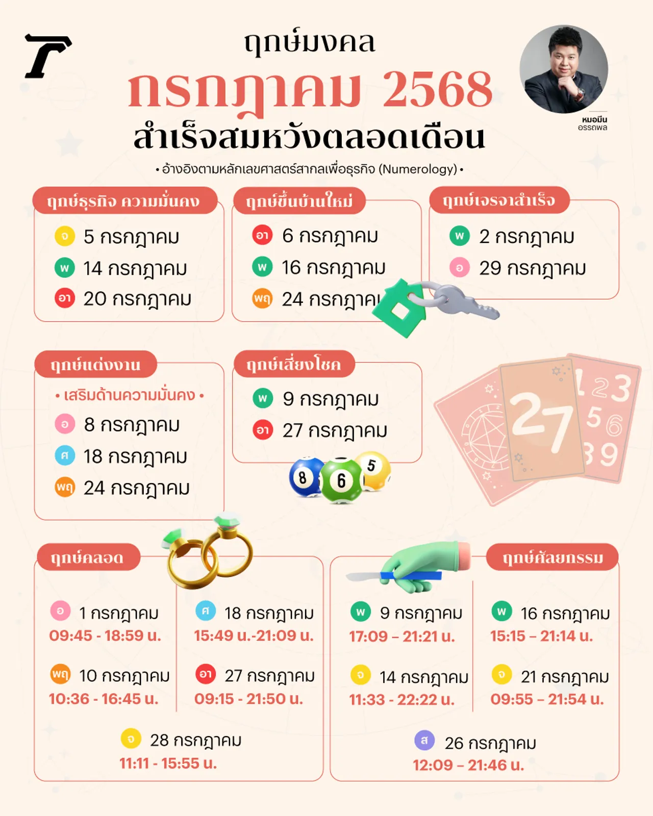 ฤกษ์ดีเดือน ก.ค. 2568 ฤกษ์แต่งงาน ศัลยกรรม เจรจาสำเร็จรุ่งเรือง