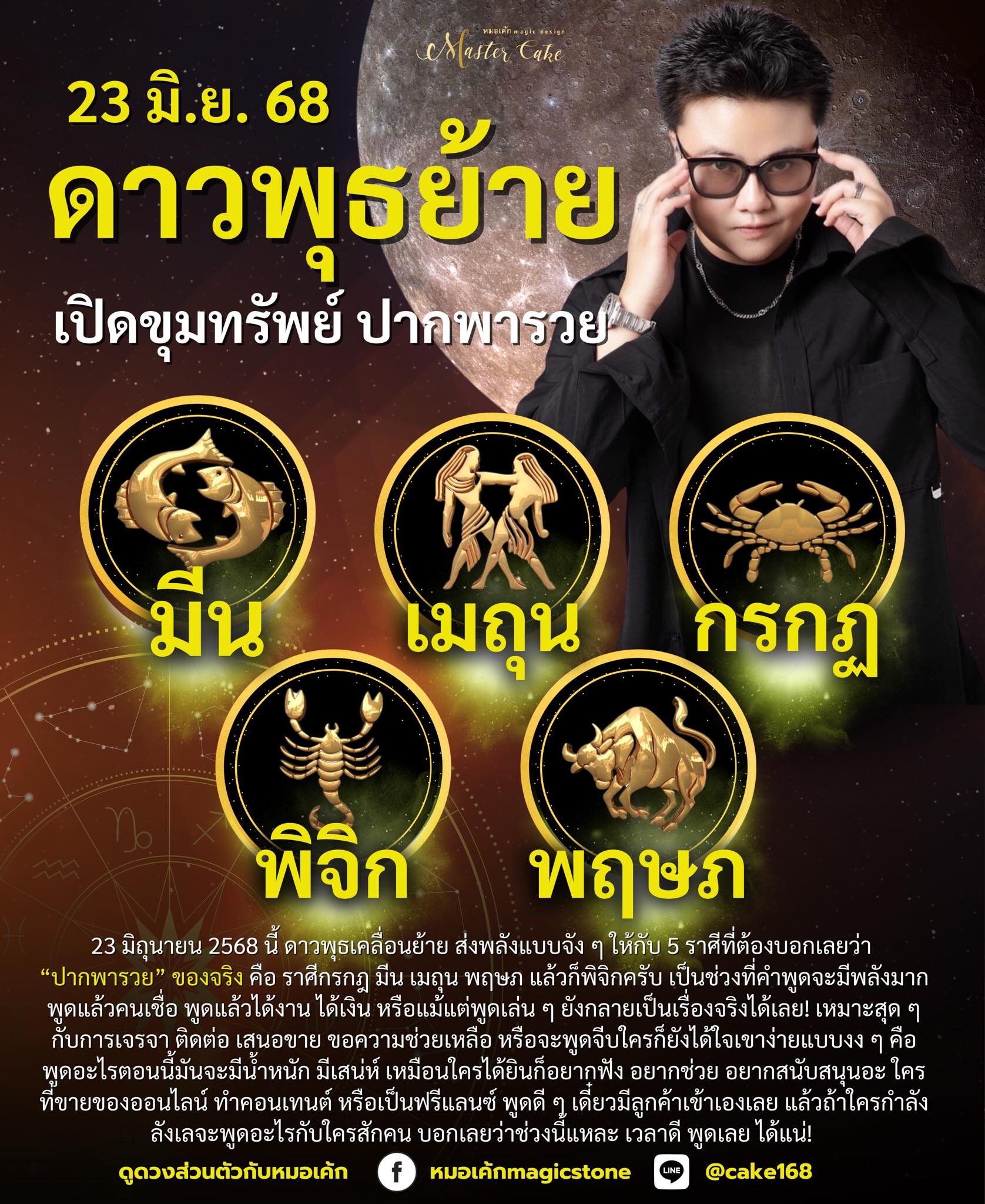 หมอเค้ก Magic stone เผยถึง 5 ราศีที่ปากพารวย ในช่วงดาวพุธย้าย 23 มิ.ย.2568เพราะคำพูดจะเปลี่ยนชีวิต เจรจาคล่อง พูดแล้วมีคนเชื่อ ช่วยให้ค้าขายดี ได้งาน ได้โชค เสน่ห์แรงแบบไม่ต้องพยายามมาก!