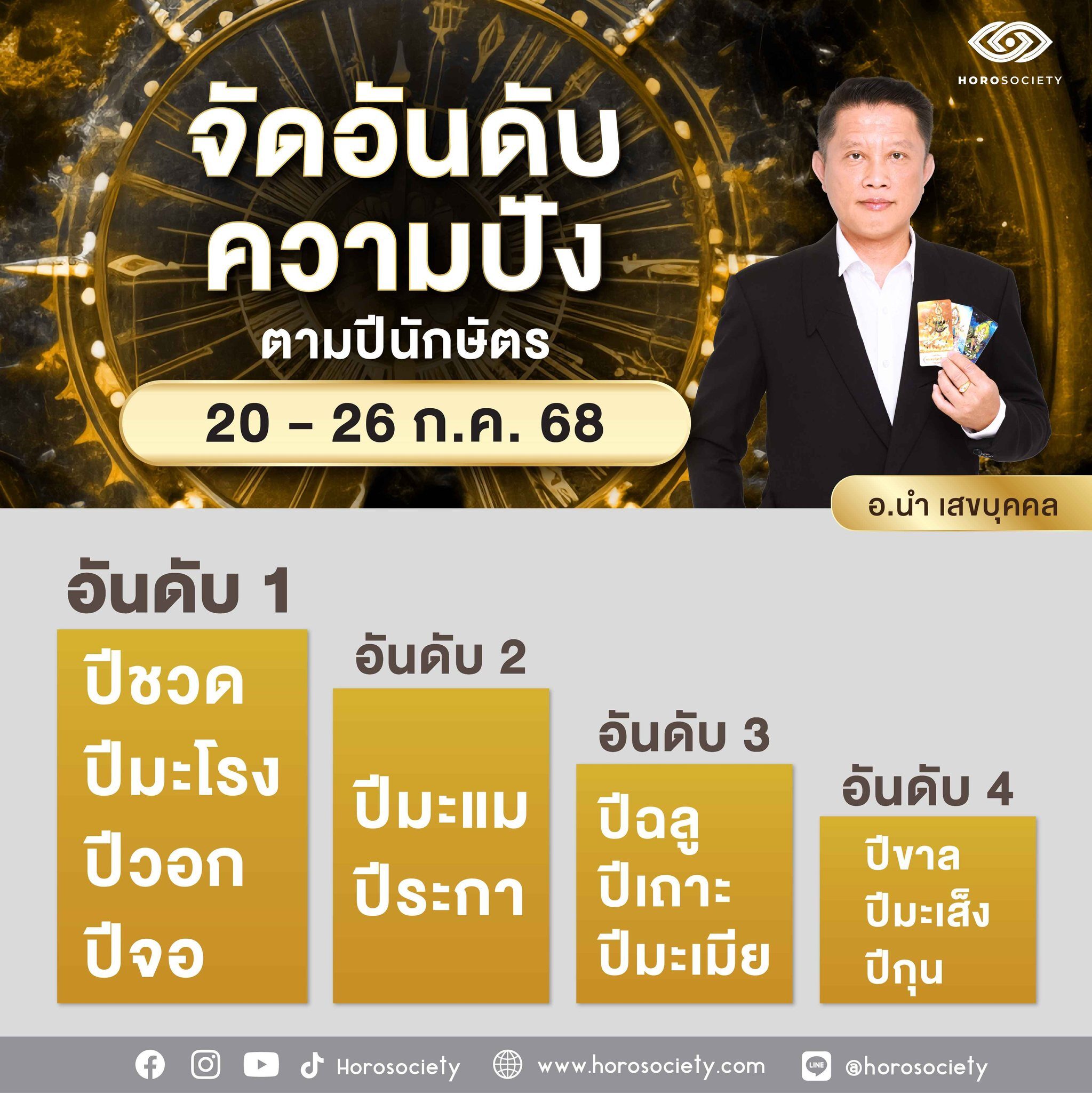 อ.นำ เสขบุคคล เผยในเพจ ดูดวงไพ่เทพนิมิต โดย อ.นำ เสขบุคคล จัดอันดับความปังปีนักษัตร รายสัปดาห์ช่วงวันที่ 20-26 กรกฎาคม 2568