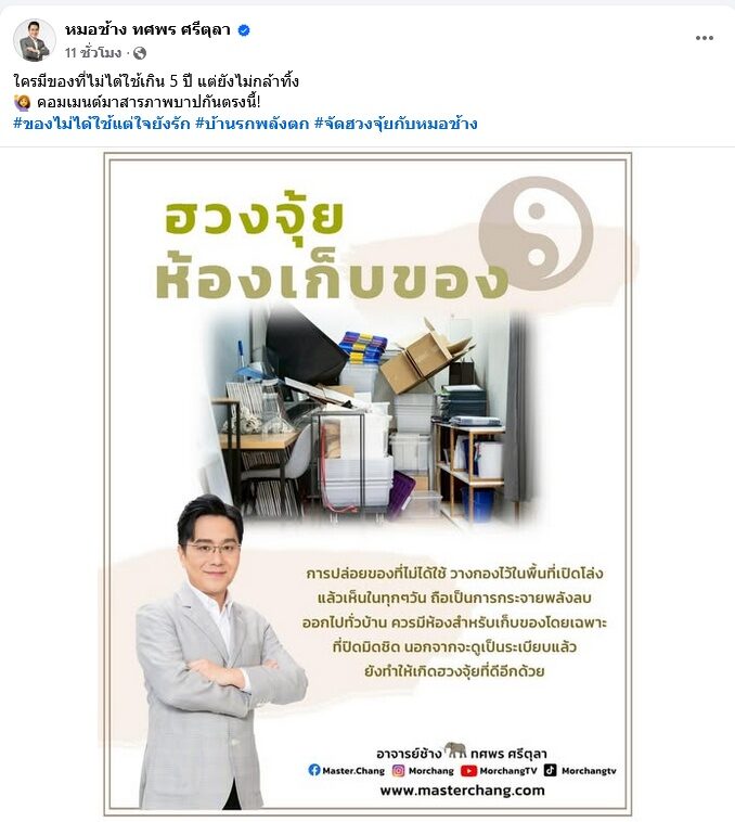 เชื่อว่าหลายบ้านน่าจะวางของลักษณะนี้กันอยู่ แนะปรับฮวงจุ้ย ลดพลังลบในบ้านได้ หมอช้าง ทศพร โพสต์แนะปรับฮวงจุ้ยบ้านง่ายๆ ว่า