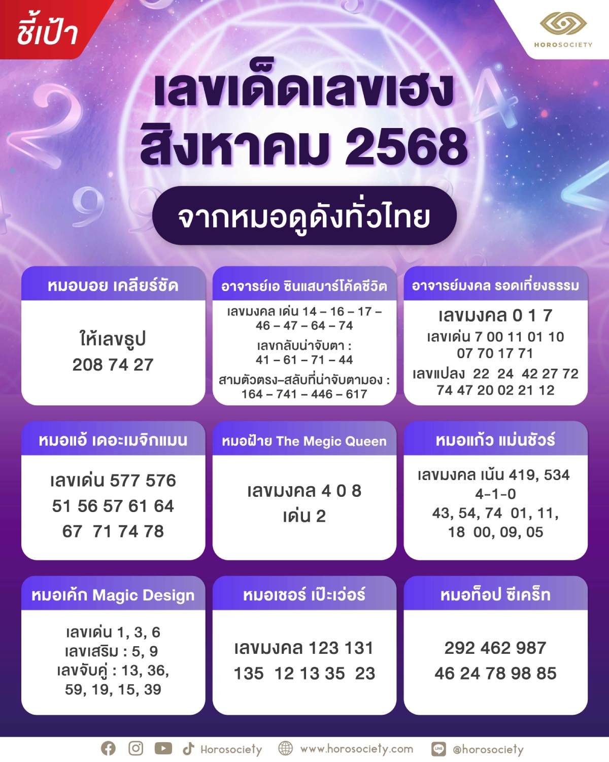 ที่มา : ชี้เป้าเลขเด็ดเลขเฮง สิงหาคม 2568 จากหมอดูดังทั่วไทย