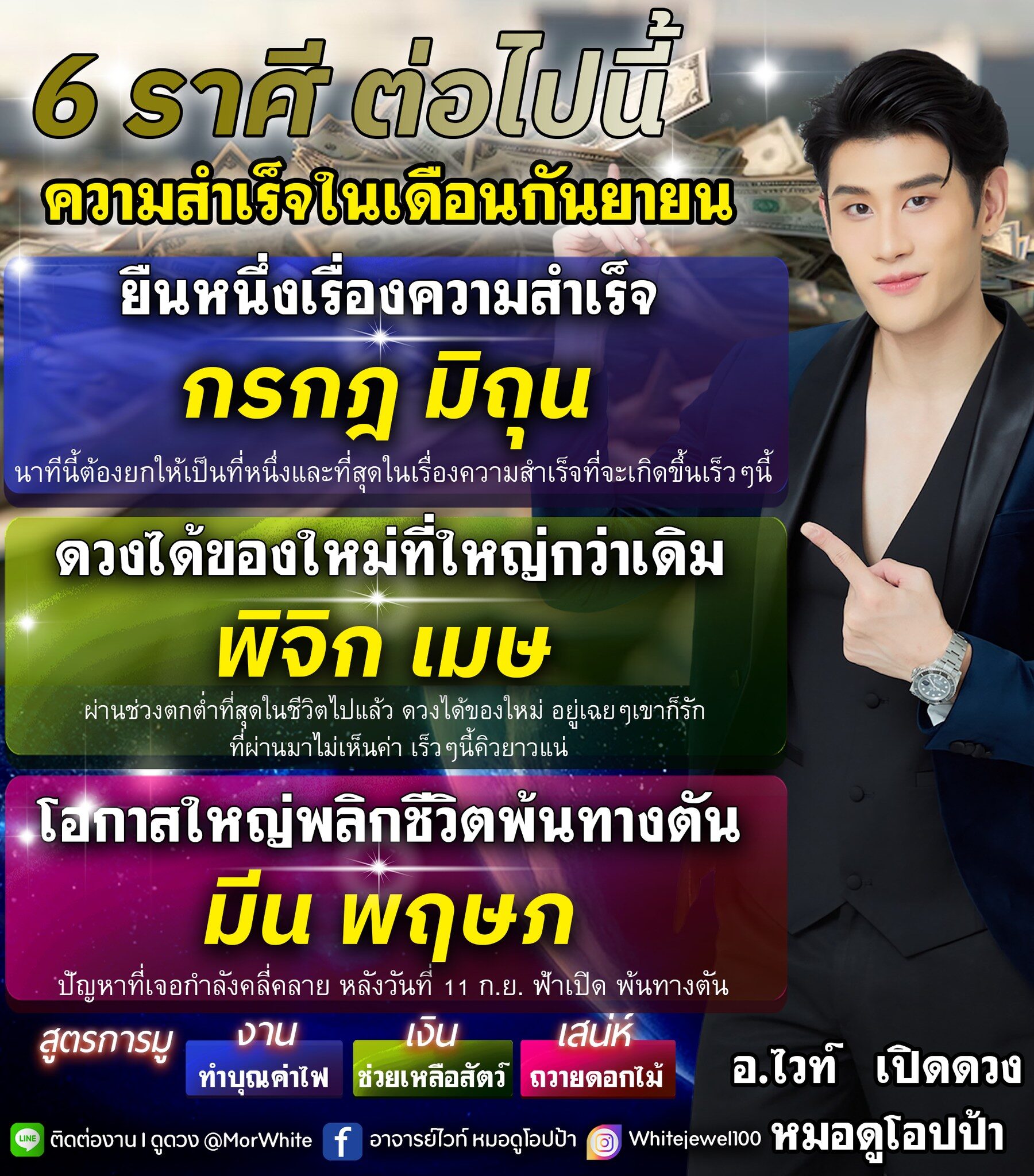 อาจารย์ไวท์ หมอดูโอปป้า เผยถึงดวงชะตา 6 ราศีต่อไปนี้ ความสำเร็จในเดือนกันยายน ยืนหนึ่งเรื่องความสำเร็จ นาทีนี้ต้องยกให้เป็นที่หนึ่งและที่สุดในเรื่องความสำเร็จที่จะเกิดขึ้นเร็วๆ นี้ ดวงได้ของใหม่ที่ใหญ่กว่าเดิม ผ่านช่วงตกต่ำที่สุดในชีวิตไปแล้ว ดวงได้ของใหม่ อยู่เฉยๆ เขาก็รัก ที่ผ่านมาไม่เห็นค่า เร็วๆนี้คิวยาวแน่