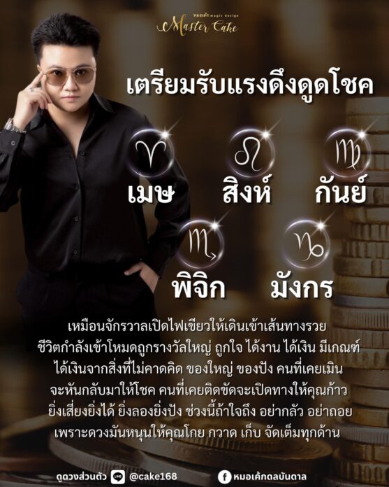 หมอเค้กดลบันดาล เผยถึง 5 ราศี เตรียมรับแรงดึงดูดโชคแรงๆ เหมือนจักรวาลเปิดไฟเขียวให้เดินเข้าเส้นทางรวย ชีวิตกำลังเข้าโหมดถูกรางวัลใหญ่ ถูกใจ ได้งาน ได้เงิน มีเกณฑ์ได้เงินจากสิ่งที่ไม่คาดคิด ของใหญ่ ของปัง คนที่เคยเมินจะหันกลับมาให้โชค