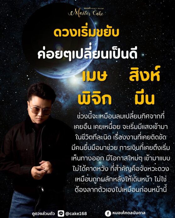 หมอเค้กดลบันดาล เผยถึง 4 ราศี ช่วงนี้ดวงเริ่มขยับ ค่อยๆเปลี่ยนเป็นดี ช่วงนี้จะเหมือนลมเปลี่ยนทิศจากที่เคยอึน เคยเหนื่อย จะเริ่มมีแสงเข้ามา ในชีวิตที่ละนิด เรื่องงานที่เคยติดขัด มีคนยื่นมือมาช่วย การเงินที่เคยตึงเริ่ม เห็นทางออก มีโอกาสใหม่ๆ เข้ามาแบบไม่ได้คาดหวัง ที่สำคัญคือจังหวะดวง เหมือนถูกผลักหลังให้เดินหน้า ไม่ใช่ต้องลากตัวเองไปเหมือนก่อนหน้านี้