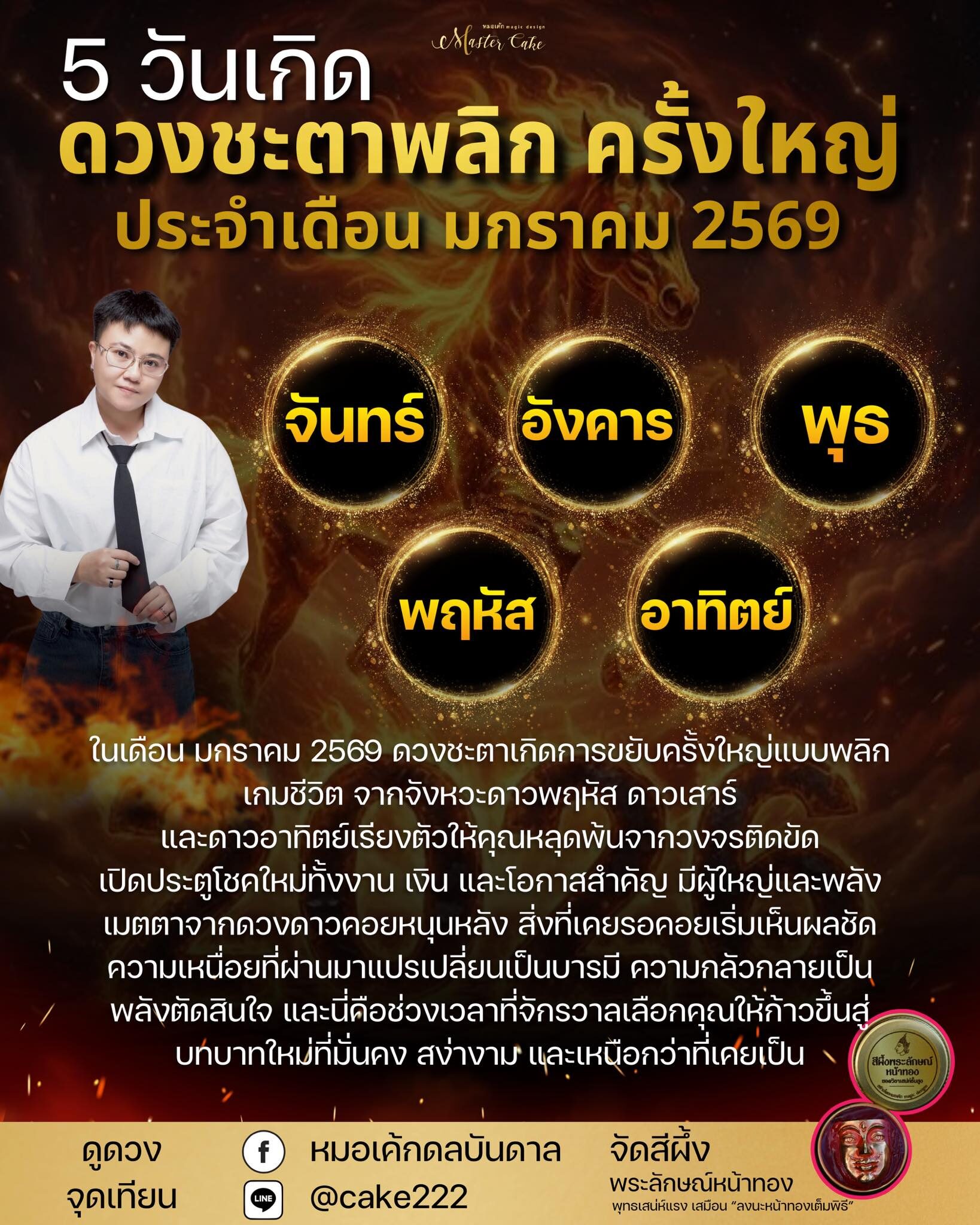 หมอเค้ก เปิด ดวงชะตา 5 วันเกิด ดวงพลิกครั้งใหญ่ ประจำเดือน มกราคม 2569 เปิดประตูโชคใหม่ทั้งงาน เงิน และโอกาสสำคัญ หลุดพ้นวงจรติดขัด