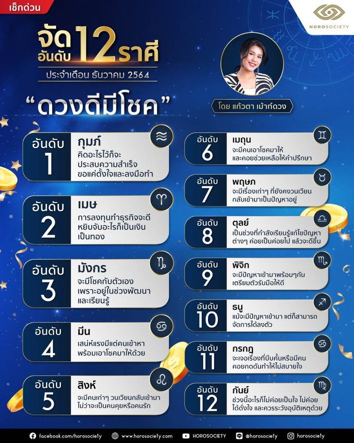ที่มา : จัดอันดับ 12 ราศี ดวงดีมีโชค ประจำเดือนธันวาคม 2564 โดยแก้วตา เม้าท์ดวง (sanook.com)