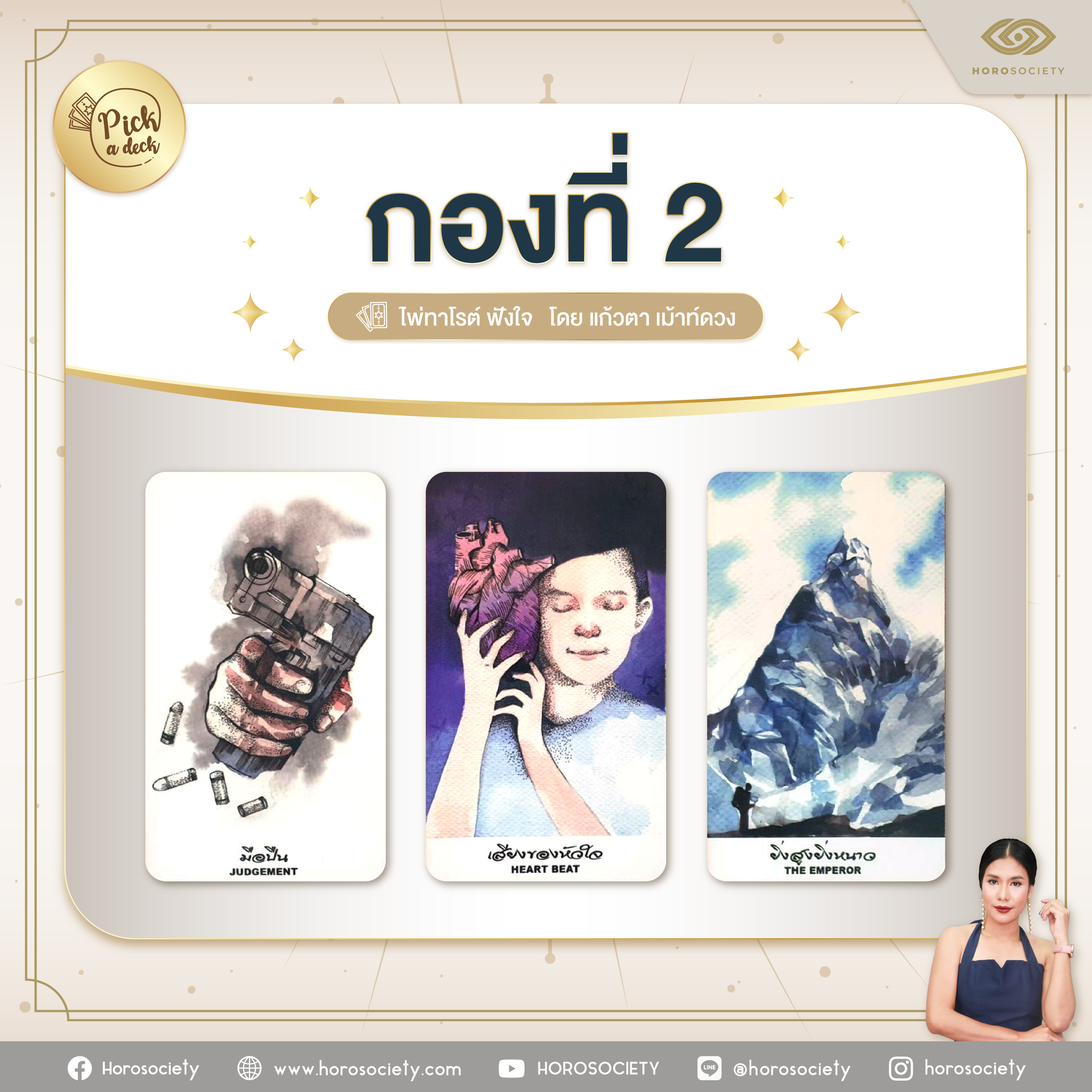 หากถามเรื่องโชคลาภของคนที่เลือกไพ่กองที่ 2 ก็ดีไม่แพ้กันเลยนะคะ โดยโชคลาภของคุณจะมาจากเลขที่คุณคิดเอาไว้อยู่แล้ว หรือเลขในใจ รวมถึงเลขเก่า ๆ ที่เคยซื้อ เคยตามมาหลายงวด แนะนำว่างวดนี้ก็ลองดูอีกสักตั้งเนาะ อย่าลังเลและอย่าไปฟังคนอื่นมากเกินไปจนไม่ได้ซื้อของตัวเองนะคะ เพราะการรับฟังหรือรับข้อมูลมามาก ๆ ก็อาจทำให้เราลังเลได้ และสุดท้ายก็จะชวดไปแบบน่าเสียดาย